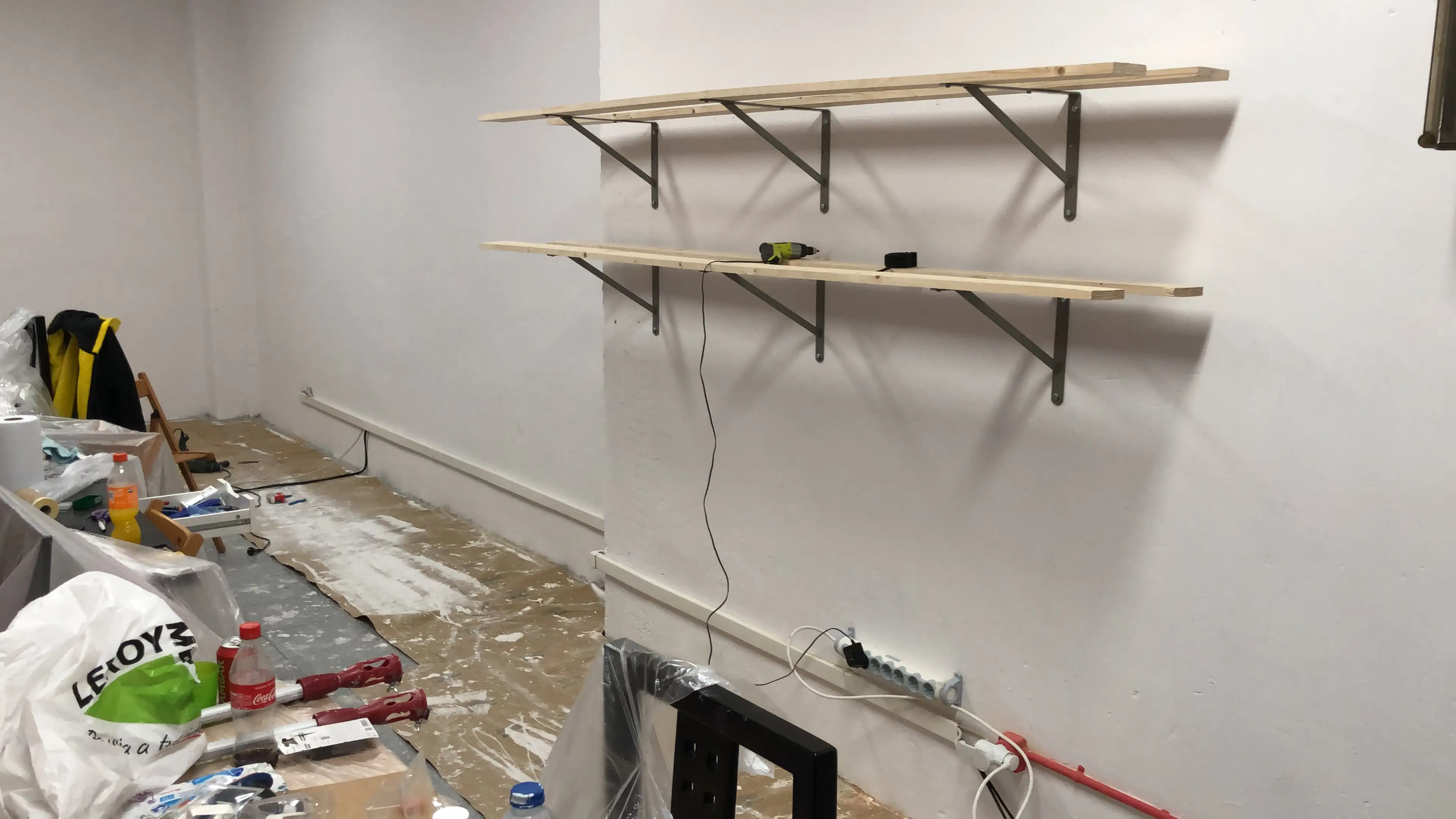 We painted the walls, set up shelves, and arranged the wiring properly. It was hard work, but the workshop already looked completely different: