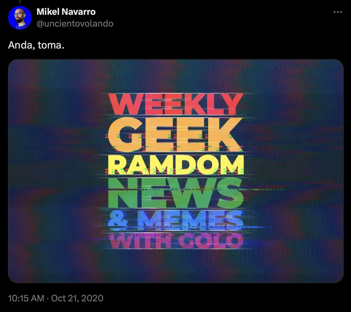 And so, Weekly Geek Random News & Memes With Golo was born.