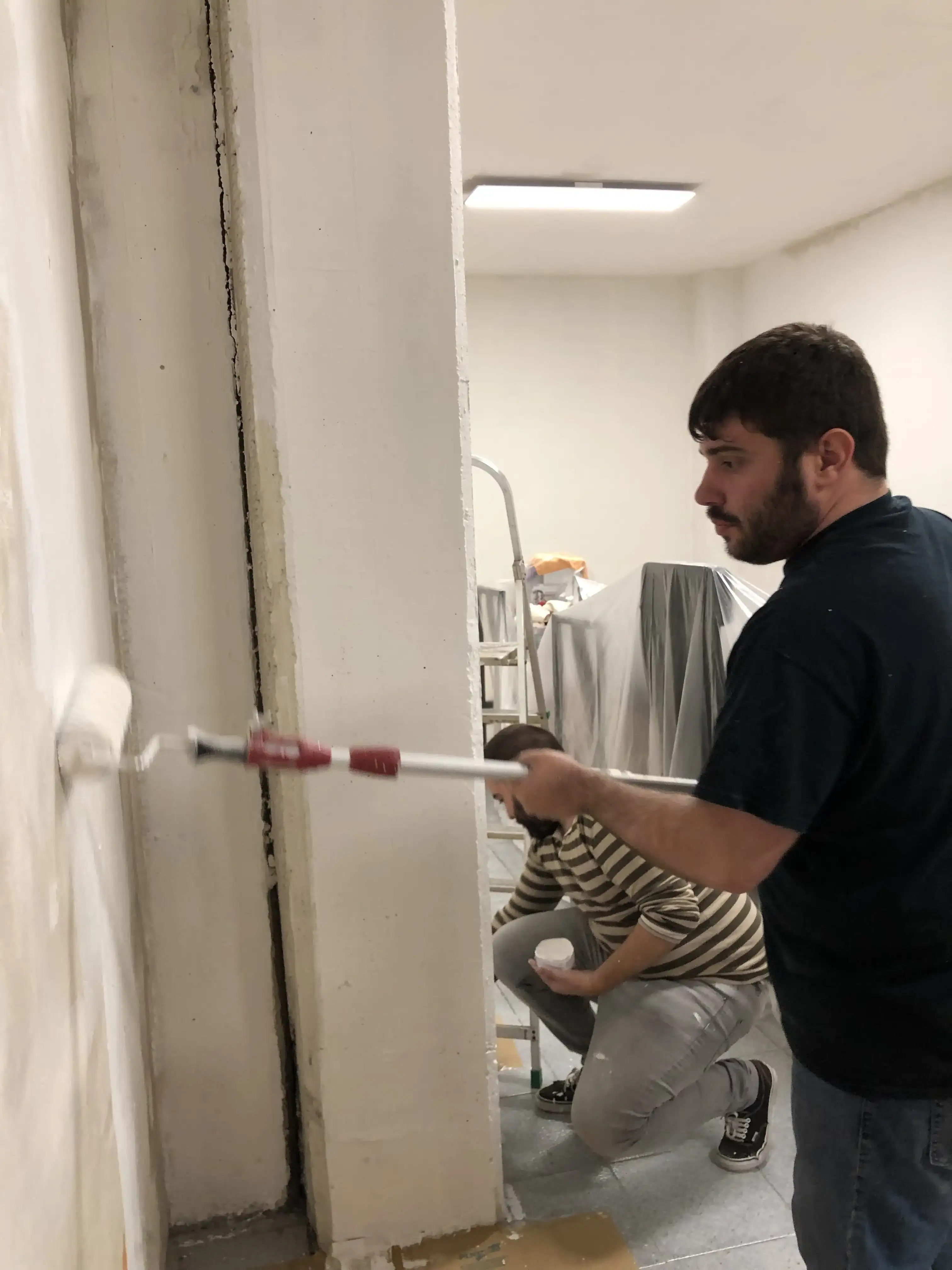El último cambio que realizamos fue pintar una pared, a solicitud de un miembro del coworking para tener un fondo diferente para grabar vídeos.